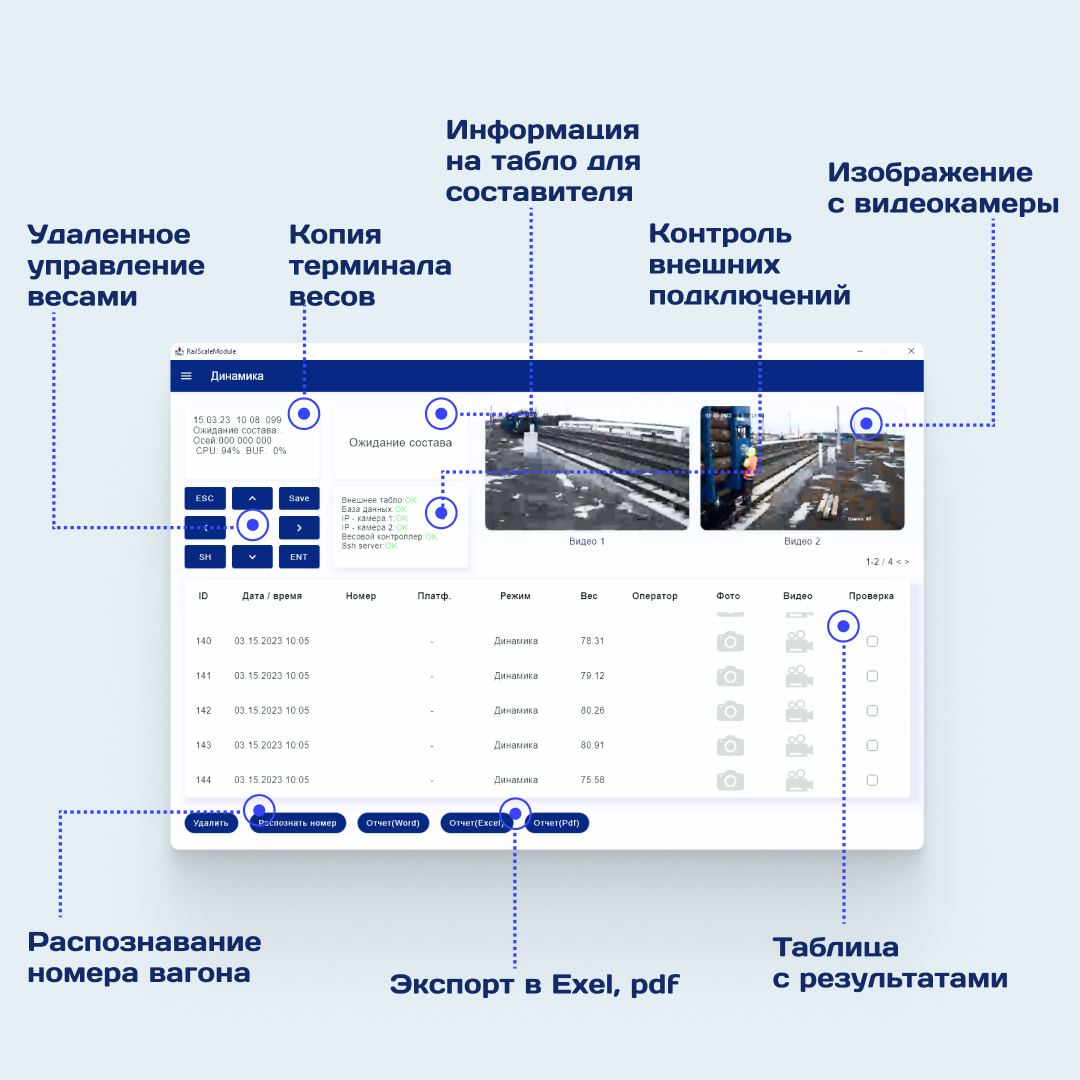 - Регистрация полной информации по всем взвешиваниям вагонов;